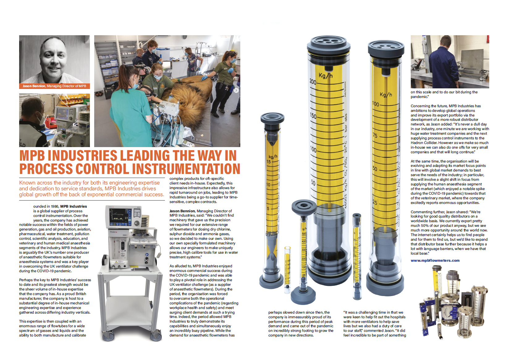 More than 60% of MPB’s business comes from products manufactured to customers’ own specifications, including flowmeters, alarms, switches, and instruments for the medical, water treatment,