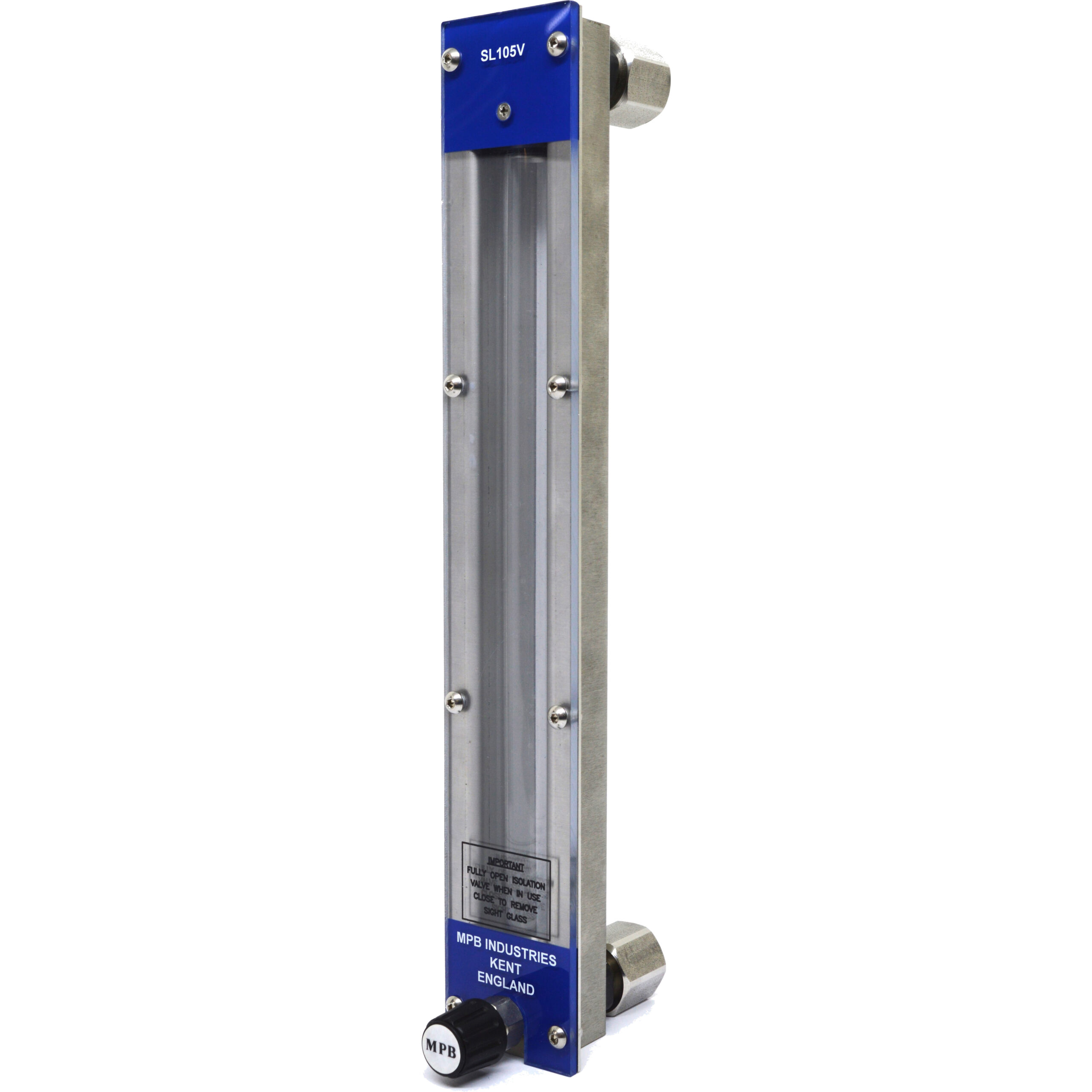 The MPB Series SL105SV is a custom-built sight level indicator, which can be manufactured in a variety of lengths in Stainless steel offering a wide range of process fluids and vessel sizes up to 1 metre centres and incorporating a polycarbonate safety cover.
